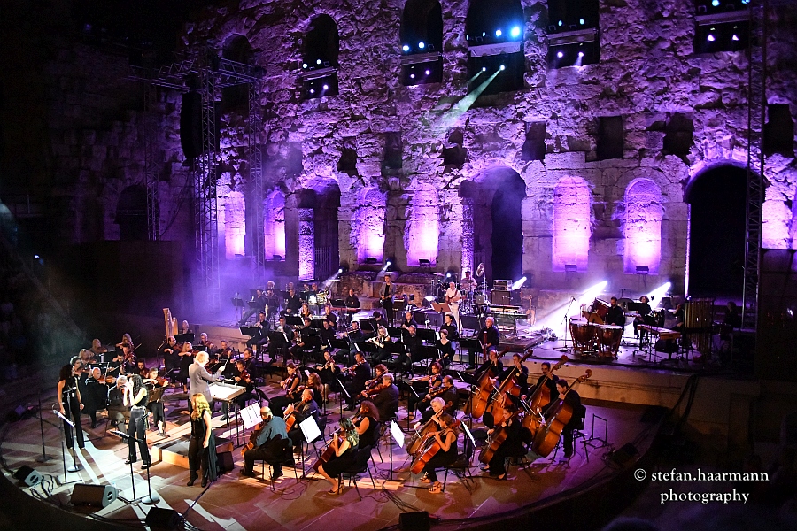 Die zackige Begrüßung des Dirigenten FRIEDEMANN RIEHLE: „Kalispera, Athina“ sorgt für den ersten Schmunzler des Abends, denn mit diesem schneidigen "Guten Abend" des Taktgebers hatte so wohl niemand gerechnet. Die Solistinnen, die im Laufe des Abends Welthits von QUEEN, LED ZEPPELIN, PINK FLOYD, U2 und EUROPE zum Besten geben, machen ihre Sache hervorragend und verleihen dem Abend neben dem wunderschön illuminierten Odeon einen fantastischen Glanz.