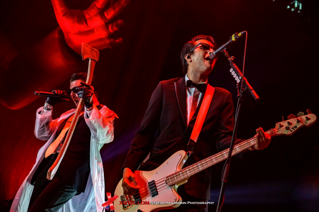 Oberhausen am gefühlt ersten Sommertag des Jahres 2024. Während allerorten die Holzkohlegrills angeheizt und die Fanmeilen zur EURO 2024 nun endlich auch das Sommermärchen-Wetter des Jahres 2006 genießen können, schlängelt sich die Karawane der in 5FDP und ICE NINE KILLS gewandeten Metalfans Richtung Rudolf Weber-Arena um dort einem Highlight des Konzertjahres beizuwohnen. FIVE FINGER DEATH PUNCH machen im Zuge ihrer Welt-Tournee an diesem Abend Station in der Arena, mit ICE NINE KILLS und EKTOMORF sitzen hochkarätige Supports in den Nightlinern, die die Aufgabe haben, das Publikum auf Betriebstemperatur zu bringen.ICE NINE KILLS  |  Rudolf Weber-Arena 2024-06-25