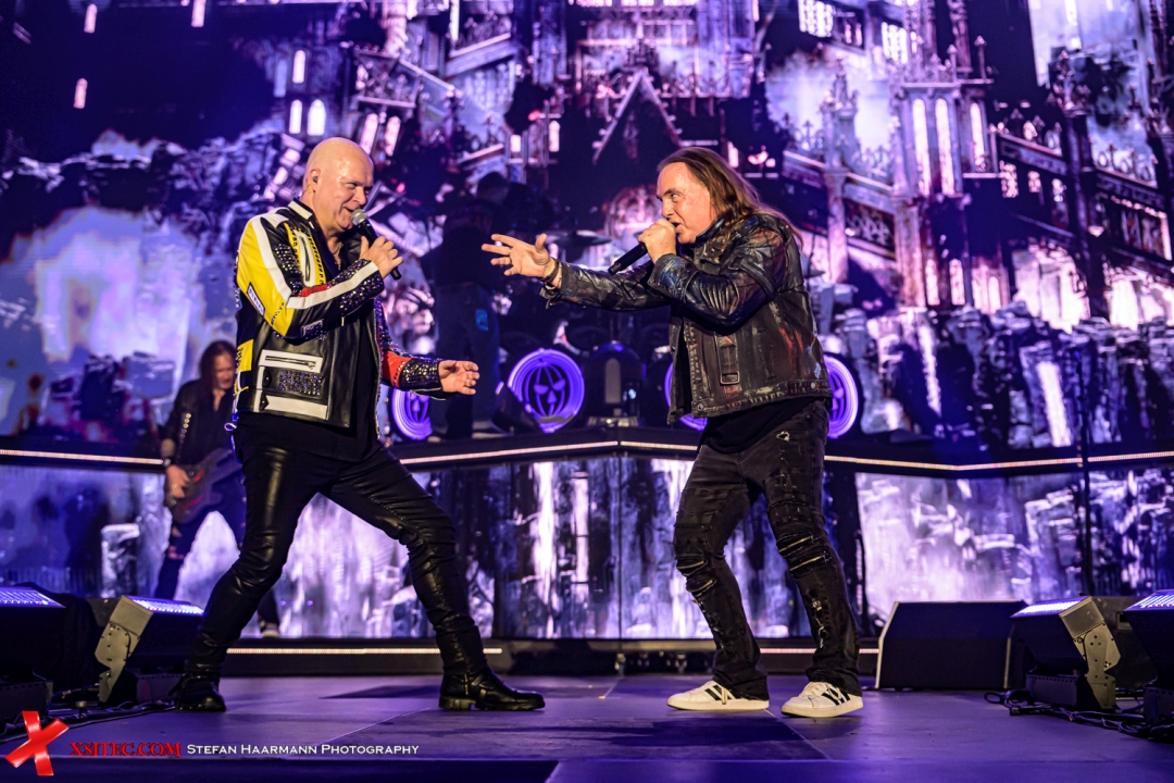 Die Setlist ist eine meisterhaft kuratierte Tour de Force. Sie ist eine Liebeserklärung an die gesamte Bandgeschichte, die nahtlos die Epochen verbindet. Man spürt den Respekt vor dem Erbe, aber auch die Freude am gegenwärtigen Moment. Höhepunkte gibt es en masse. „Twilight Of The Gods“ wirkt live wie eine monumentale Symphonie, bei der alle drei Sänger glänzen. „I Want Out“ wird begleitet durch einen mächtigen Kanonenschlag dund Pyro-Effekte, die den Saal erhellen und die gesamte Menge in einen einzigen, hüpfenden Metal-Organismus verwandelt, ist die Ekstase absolut. Dies ist mehr als ein Lied; es ist eine Hymne, ein Lebensgefühl.