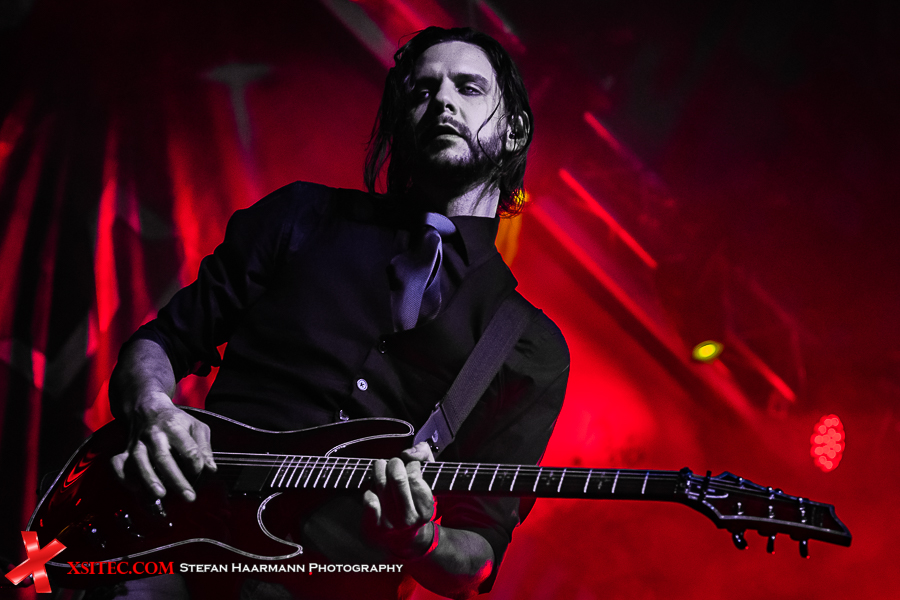 Heli Reißenweber - ganz in Schwarz gekleidet - ist die Art von Frontmann, der nicht viele Worte braucht, um das Publikum in seinen Bann zu ziehen. Meistens genügt eine theatralische Pose und ein Blick seiner tiefblauen Augen. Nach „Maerzfeld“ und „Einer Wie Alle“ gibt es mit „Flammenhände“ einen weiteren Ohrwurm vom aktuellen Album, der auch visuell perfekt umgesetzt wird und Reißenweber in einem durch die Bühnenlichter kreierten Dreieck erstrahlen lässt.
