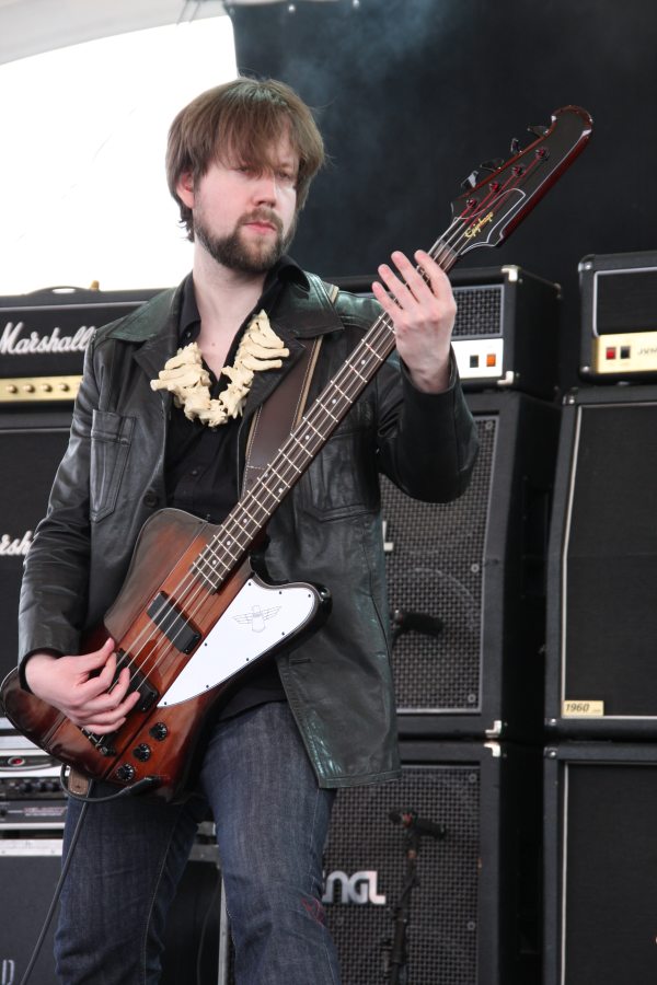 die Aufgabe, das Publikum anzuheizen - was der Band, die klar zu den besten Newcomern aus unseren Breitengraden zählt, gut gelang. Was auch daran lag, dass die Jungspunde sich inzwischen jede wichtige Metallerpose angeeignet haben und so eine ahnsehnliche Show boten. Auch war man insgesamt etwas weniger schüchtern, als noch vor ein paar Wochen beim Konzert im Essener Turock, so dass man die Rolle als Opener letztendlich perfekt ausfüllte. Zwar war der Sound bei den Songs des Debütalbums "Satan's Boundaries Unchained" noch ein wenig dünn, das schon zahlreich vor der Bühne versammelte Bangervolk spendete nichtsdestotrotz reichlich Applaus. Schwerer tat man sich danach bei NECROS CHRISTOS, deren dunkler, böser Death Metal reichlich zäh aus den Boxen waberte. Auch die introvertierte Bühnenshow mitsamt bemerkenswert seltsamer Optik wie der Knochenkette des ansonsten überhaupt nicht düster wirkenden Gitarristen war nicht jedermanns Sache, so dass sich die Begeisterung allerseits in Grenzen hielt. Zwar ist ein Liveauftritt dieser Band eine wirkliche Seltenheit, doch zeigte ihre sperrige Musik bei strahlendem Sonnenschein nur wenig Wirkung.